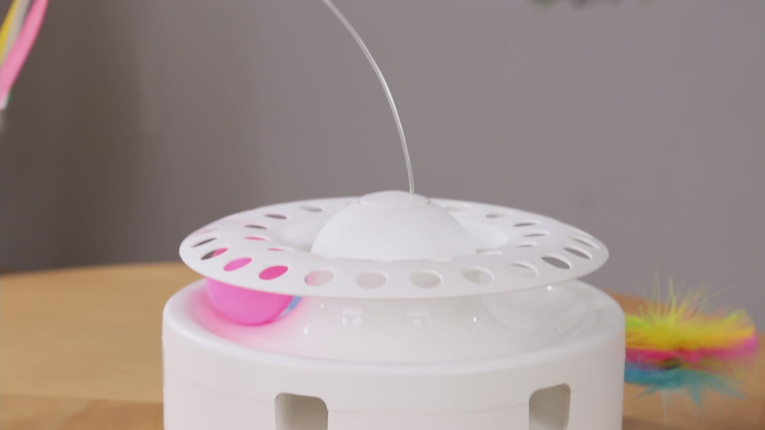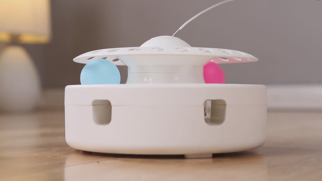 Renkli topları piste koyun ve kedinizin patilerini piste sokmasını, topa vurmasını ve keyifle oynamasını izleyin.