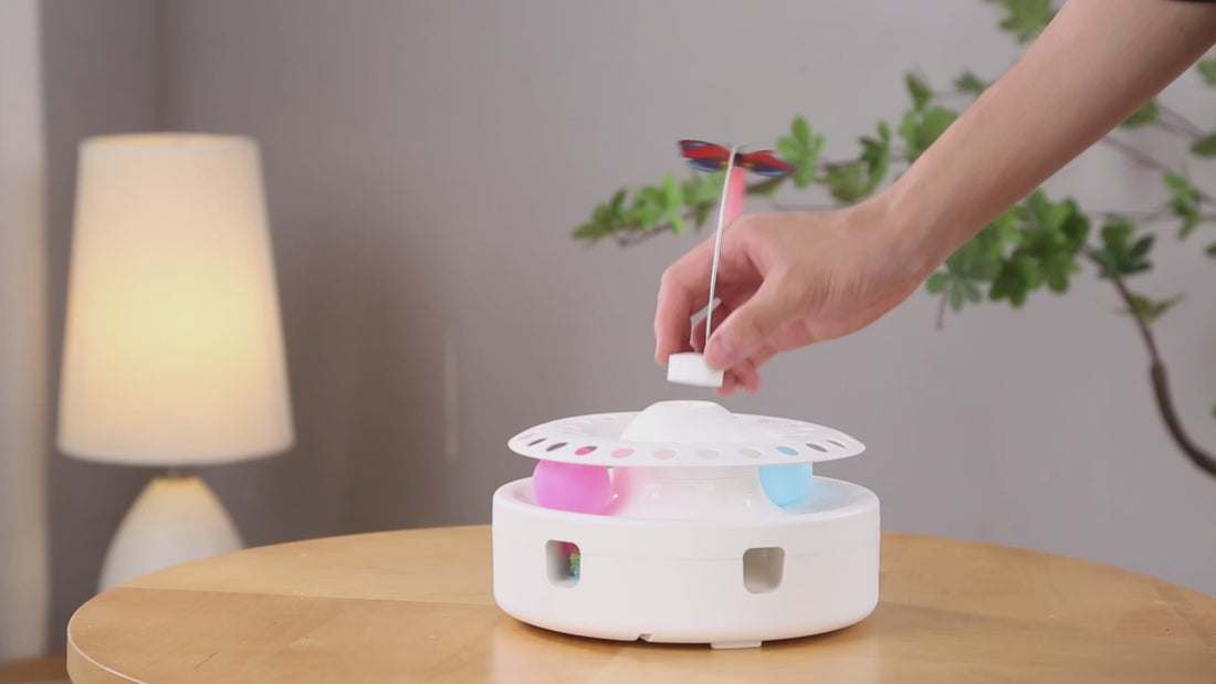 Gerçek bir kelebek gibi bazen saat yönünde, bazen saat yönünün tersine, düzensiz bir şekilde 360° kanat çırpar. En zeki kediler bile hareketleri kolayca çözemez. Uzun süreli oyun oynamayı teşvik eder.