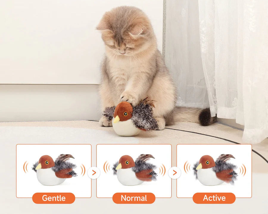 🐾 Dokunulduğunda kanat çırparak gerçek bir serçe gibi hareket eder, kedinizi oyuna davet eder.