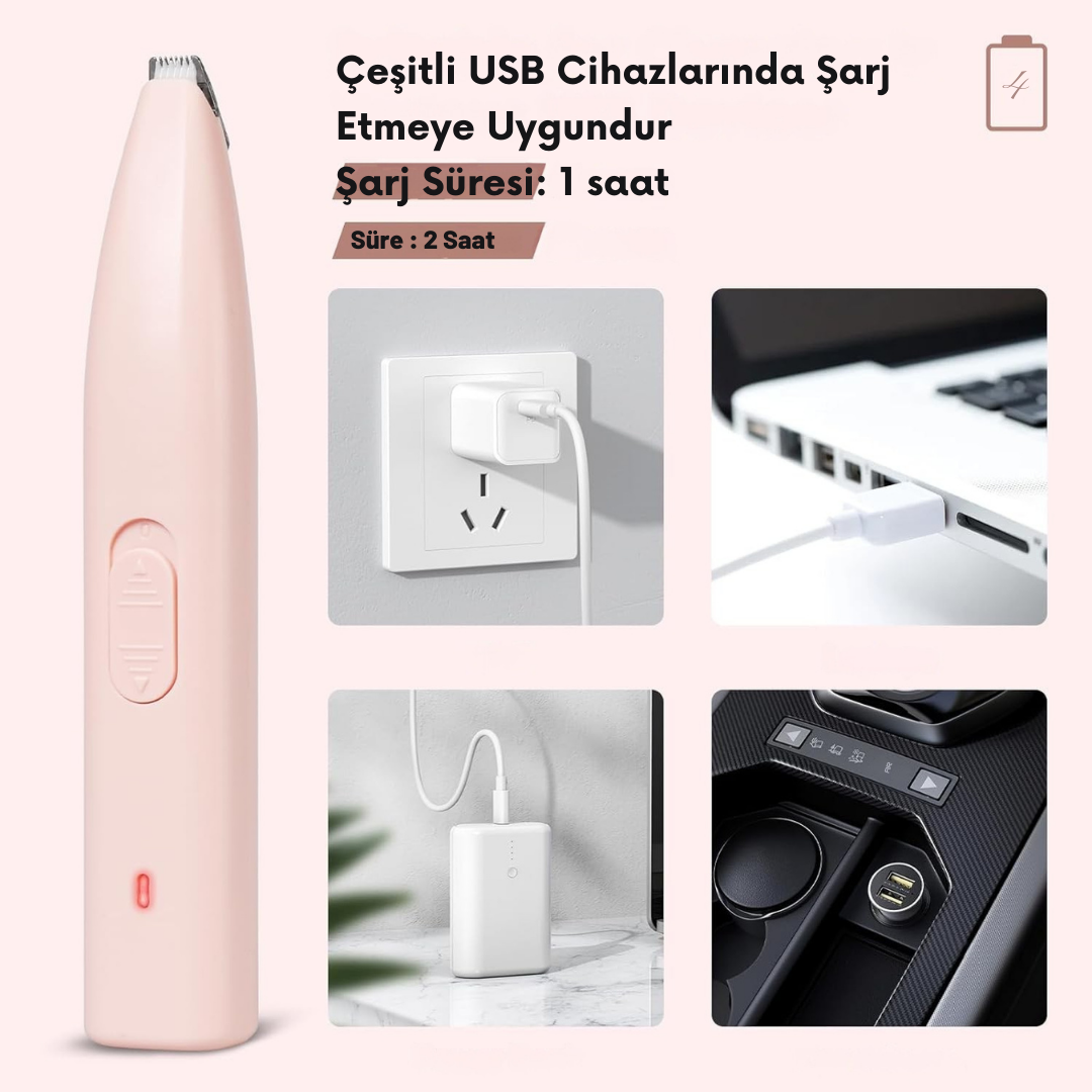 Kompakt ve ergonomik tasarımı sayesinde pati, yüz, kulak ve hassas bölgelerde yüksek kontrol sağlar. Şarjlı ve kablosuz yapısı ile her ortamda pratik kullanım sunar, kuaför masrafını azaltır.